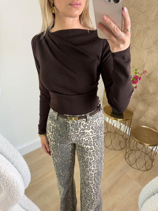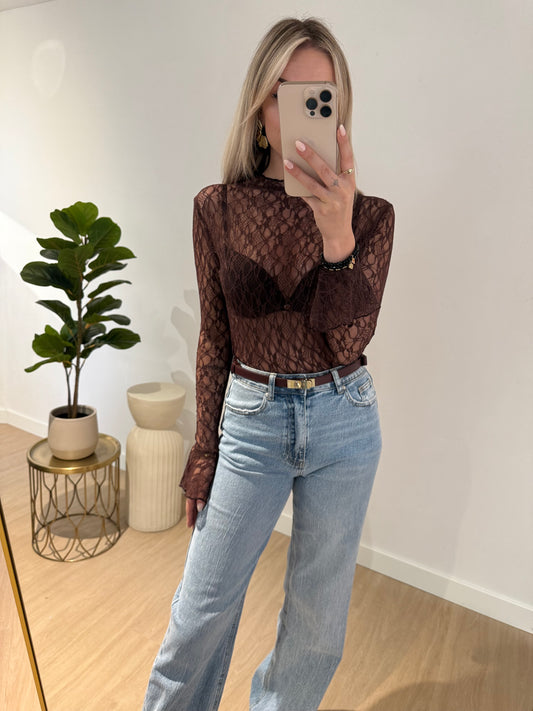 UitverkochtRUFFLE LACE TOP - CHOCO BROWN