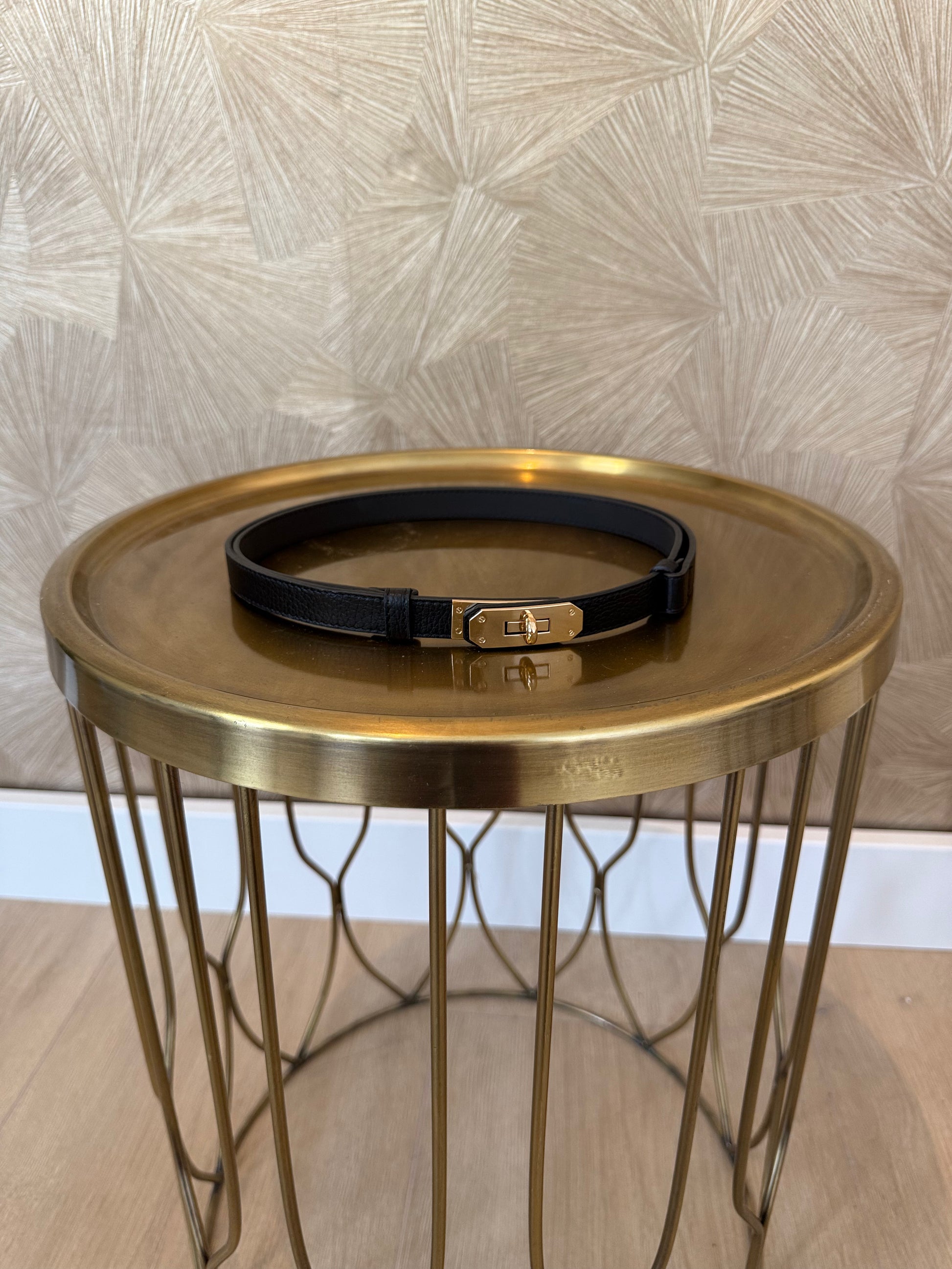 Mooie riem, echt leder met gouden accent, eenvoudig op eigen lengte te maken.